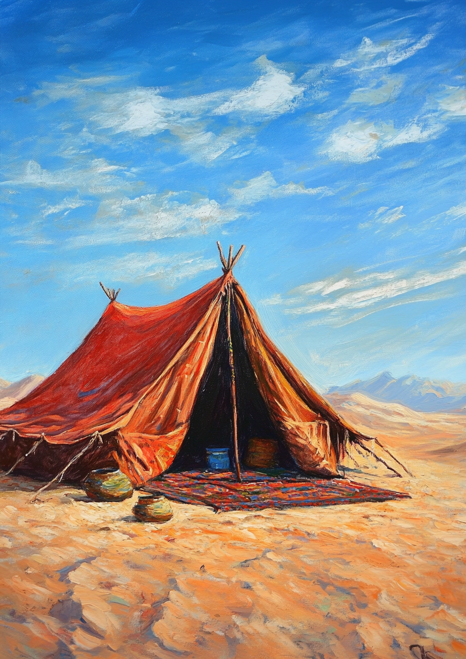 Quiet Refuge captures the essence of impermanence and rootedness at once. It speaks to the dignity of simple living, to the calm strength of those who carry home within themselves. An ode to stillness, shelter, and heritage beneath the sun.