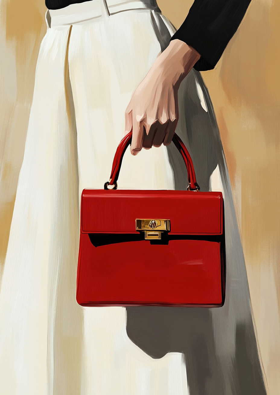 This work is a portrait of quiet power. An accessory becomes something more: an emblem of control, curation, and unspoken story. It captures the essence of femininity not through spectacle, but through intention: a crimson purse held with poise, ivory fabric flowing softly beside it, every detail deliberate and composed.